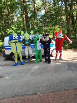 Im Juni war ich dann zum Schultütenfest der Polizei nach Ahmsen zur Waldbühne eingeladen. Dort habe ich ein paar von meinen Maskottchenfreunden getroffen, aber ihr könnt euch schon vorstellen, wer der der Held des Tages war? Natürlich die Kids aus der Samtgemeinde Freren, die mich ordentlich angefeuert haben!